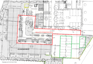 Esimerkkikuvan tarkoituksena on näyttää alueet, joissa pysäköinti ja ajo ovat kiellettyjä (punainen alue) sekä alueet, joissa ne ovat sallittuja (vihreä alue). Asukkaat ovat vastuussa siitä, että heidän vieraansa noudattavat samoja ohjeita kuin asukkaat itse.